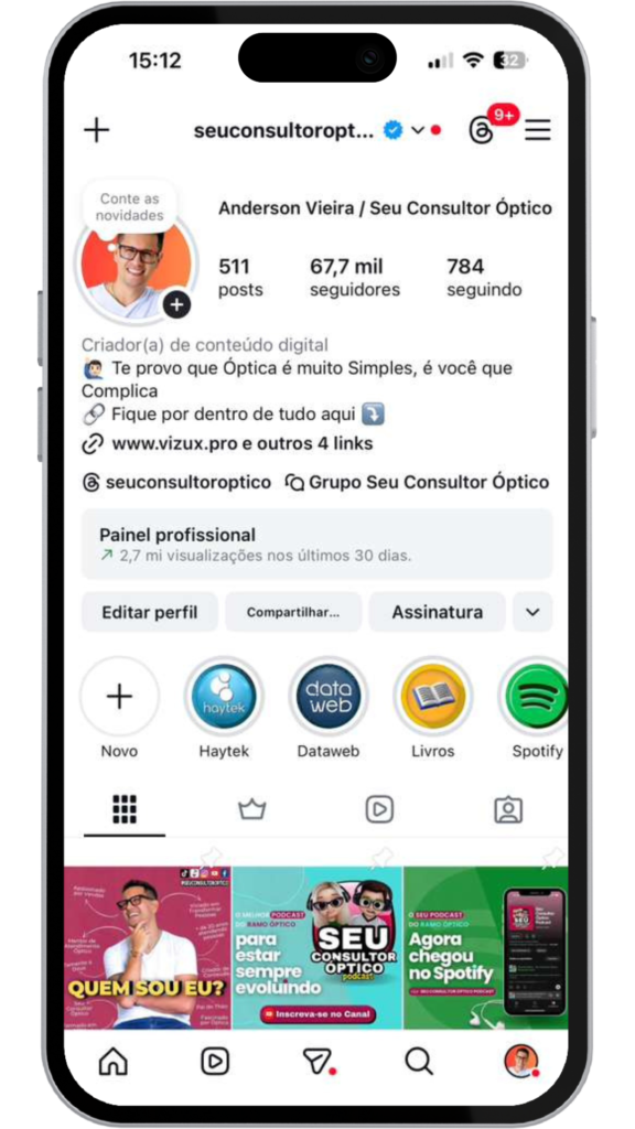 Além disso, sou criador do SEU CONSULTOR ÓPTICO PODCAST, o primeiro podcast do setor